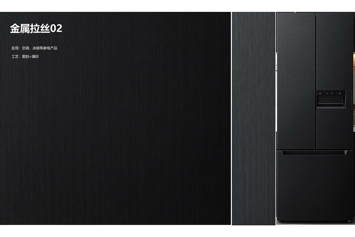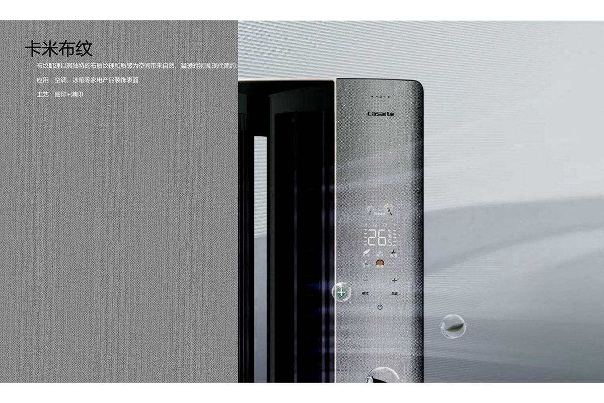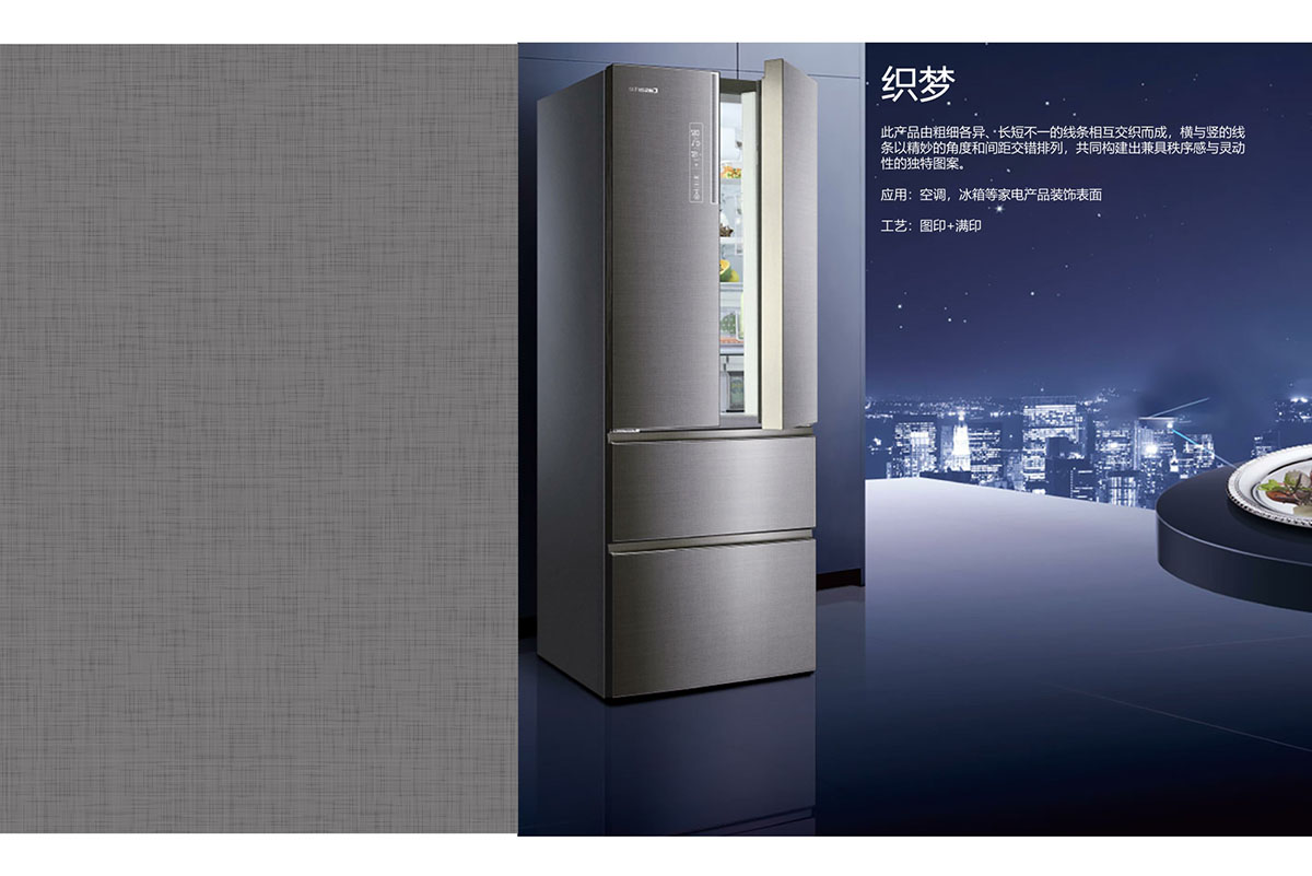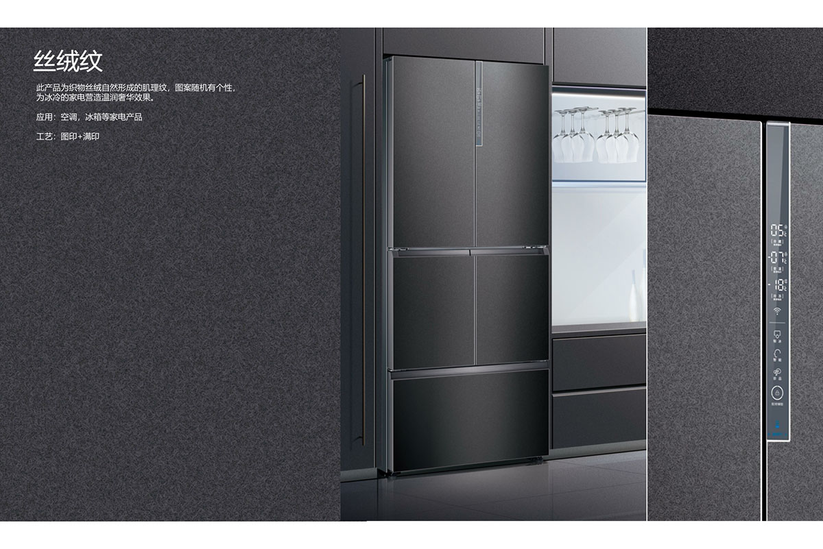 此产品为织物丝绒自然形成的肌理纹,图案随机有个性, 为冰冷的家电营造温润奢华效果。
