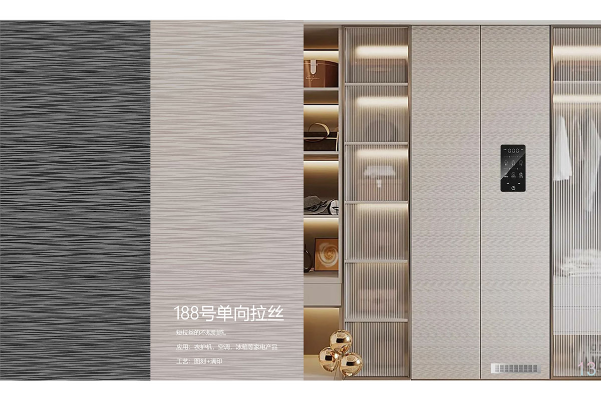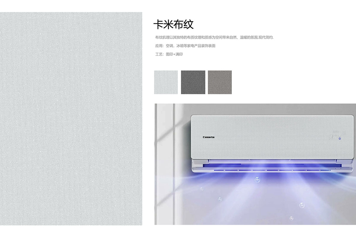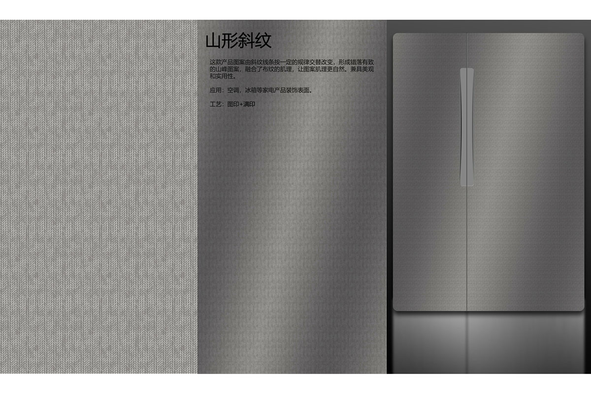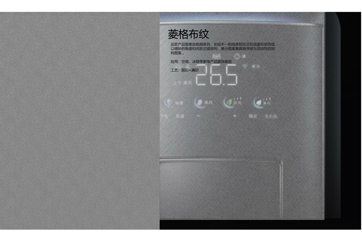 此产品为织物丝绒自然形成的肌理纹,图案随机有个性, 为冰冷的家电营造温润奢华效果。