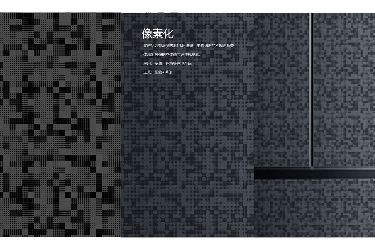 此产品为有深度的3D几何纹理,由疏到密的不规则渐变 体现出极强的立体感与理性视觉感。