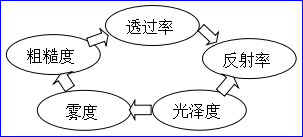 影响玻璃防眩光效果的因素主要有材料透过率、反射率、表面粗糙度、光泽度和雾度,其相互关系如图4。