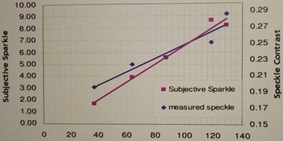(3)光泽度与闪光点成正比。光泽度越低,闪光点就越低。在粒子跨度大小与显示器像素相匹配的情况下,粗糙度就会越高,越粗糙的表面可以增加光的扩散,闪光点越少。下一代显示器对分辨率要求会越来越高,闪光点会被更加重视。