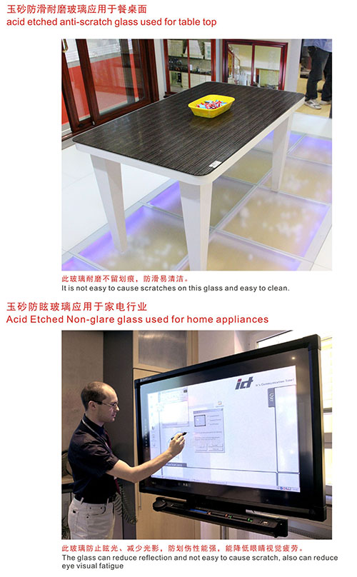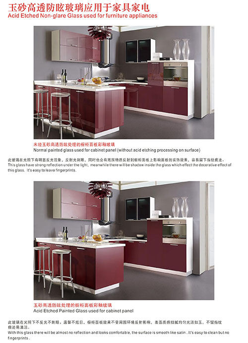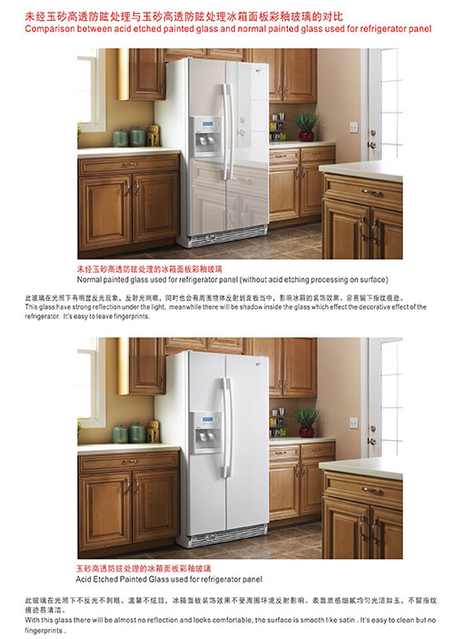 未经玉砂高透防眩处理与玉砂高透防眩处理冰箱面板彩釉玻璃的对比